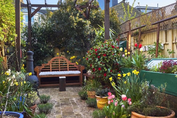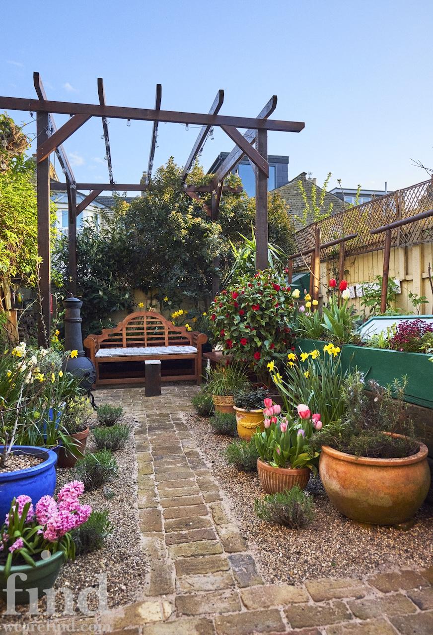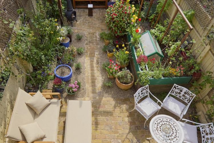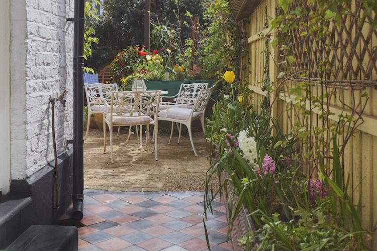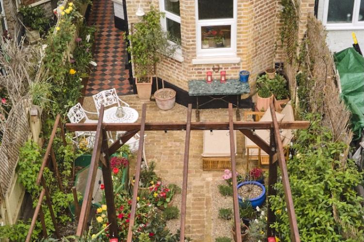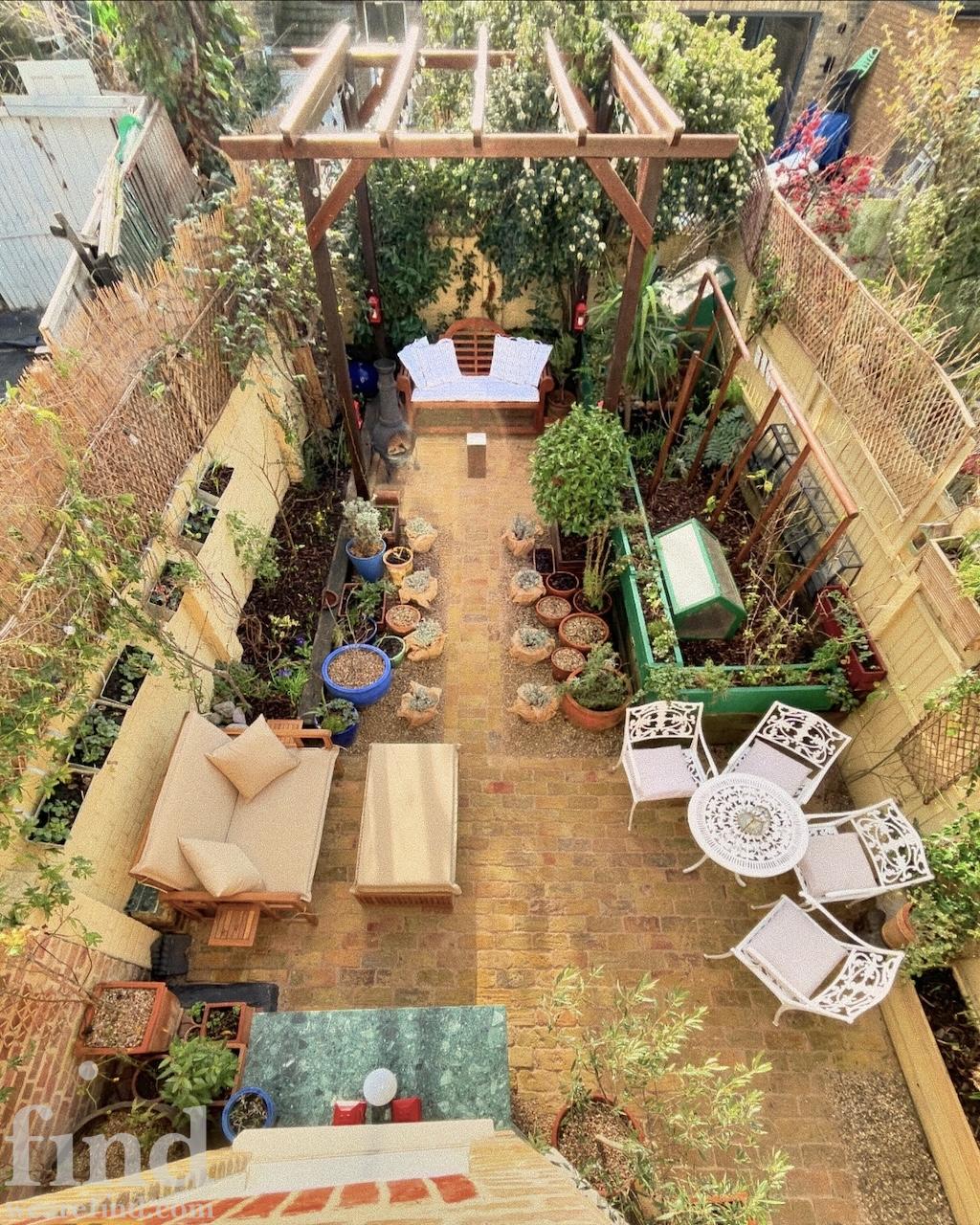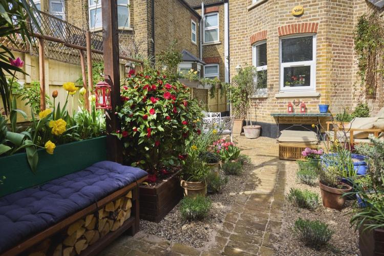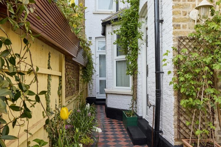 There are new cast iron radiators throughout the house, which has just been completely re-wired too. Two bay windows and a glass door look out from the dining room onto the lovely south facing, cottage style garden which has walls on two sides. It has a reclaimed London Stock brick patio, grass lawn and raised beds which are full of flowers, vines, fruits and vegetables from spring through to autumn. There is a beautiful wrought iron garden furniture set and a wooden bench too.