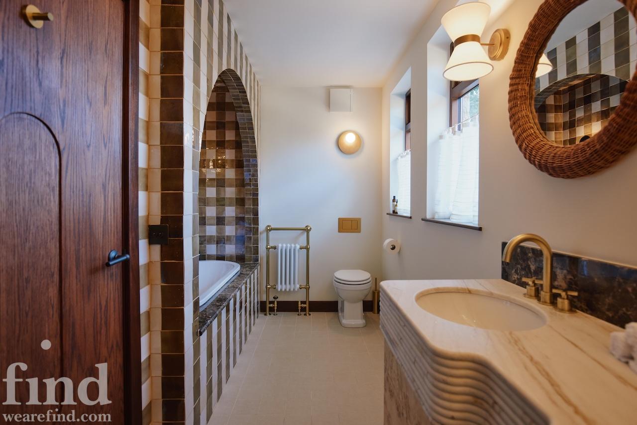 A design-led, 4 bedroom homestay situated in the Cotswolds. Though it's located in the heart of the traditional british countryside, this property strikes a different chord: an iconic, 70s-inspired interior scheme, with gorgeous, high-end finishes and impeccable attention to detail. From a gingham-tiled bath to a yellow, palm-beach style roof terrace, a wonderful blend of rich, 70s hues and luxurious finishes and fixtures.