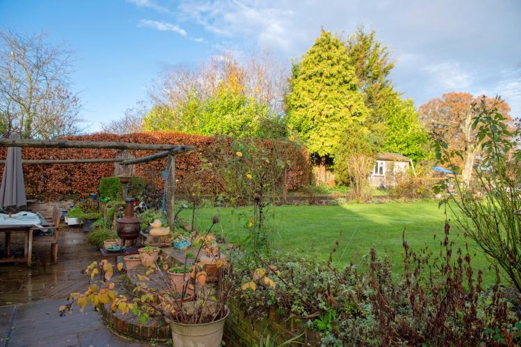 garden that runs into a field, which in turn backs onto a gorgeous valley.
