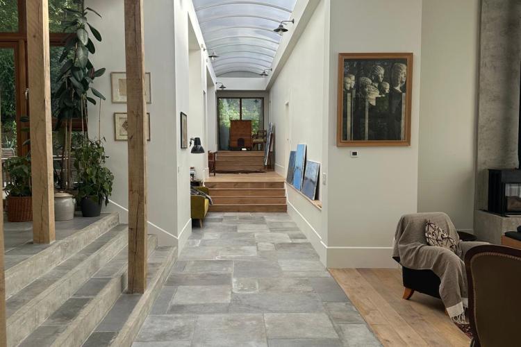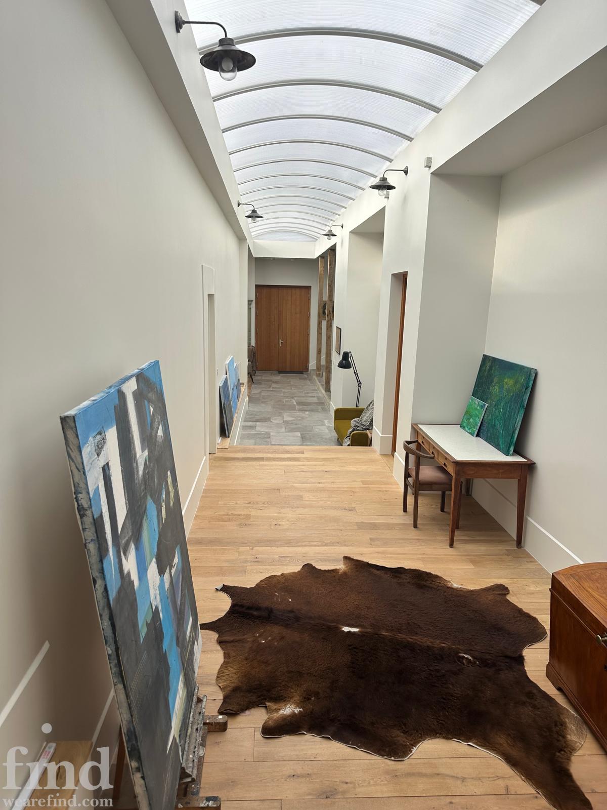 The house features strong modern architecture with expansive glazing, skylights and generous ceiling heights (5.5 metres at is highest), allowing for excellent natural light. A long, unusually wide central corridor provides depth, symmetry and clean sightlines.