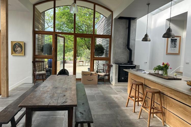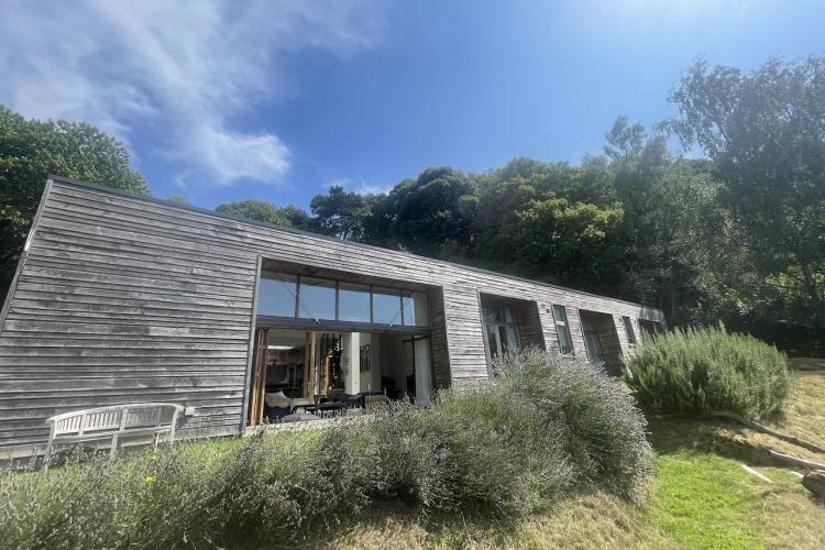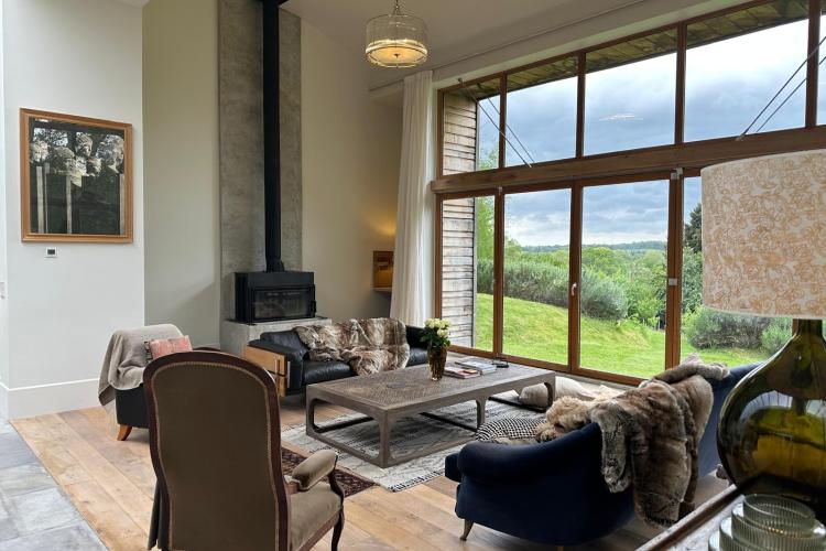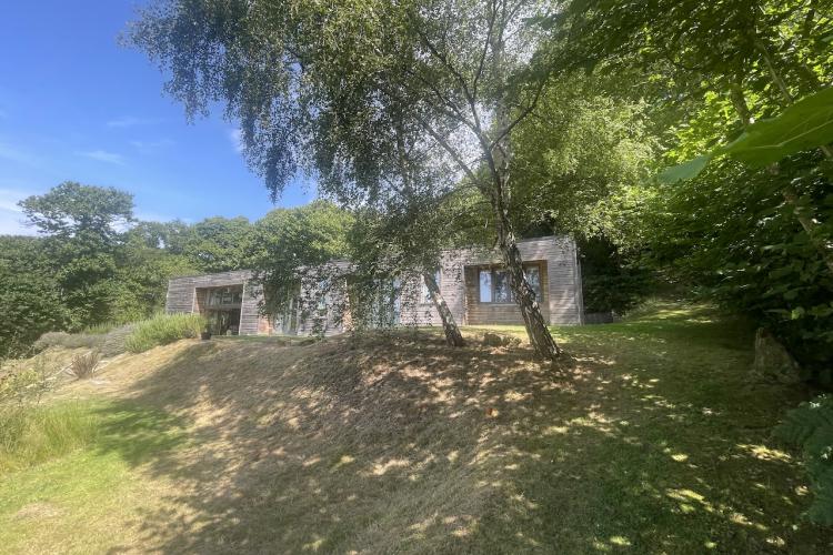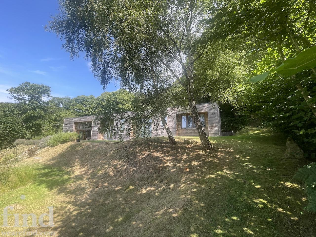 A modern, architecturally distinctive, contemporary home set high on a secluded hillside. Designed as a peaceful and light-filled retreat, the house offers expansive views across rolling countryside and uninterrupted sunsets.