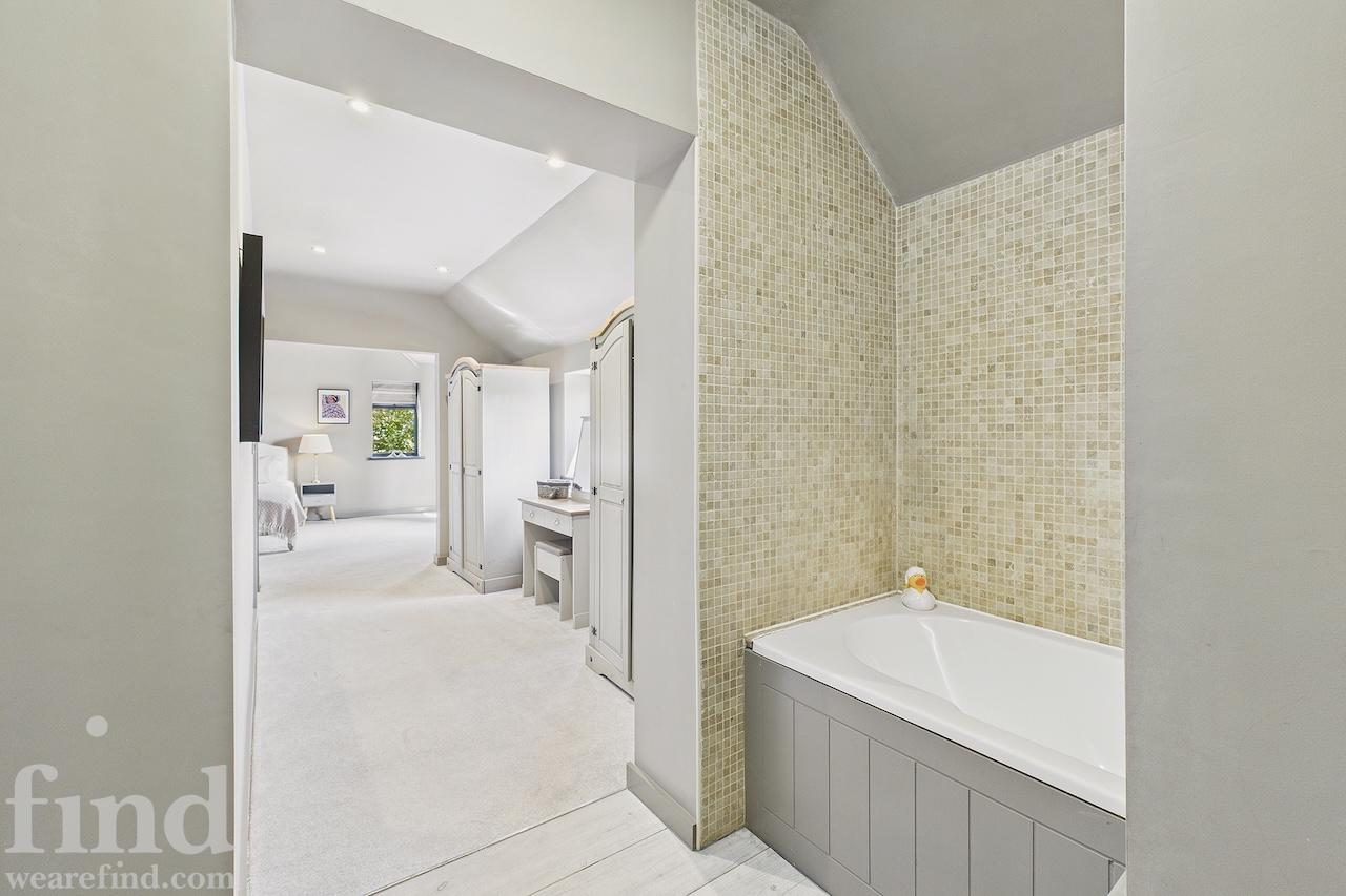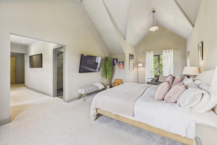 The super-king-size bedroom features an en-suite with a walk-in shower, basin, and WC. The ground-floor king-size bedroom and the first-floor king-size bedroom both come with en-suites, each equipped with a bath, walk-in shower, wet room, basin, and WC. The family room also has an en-suite with a walk-in shower, basin, and WC.