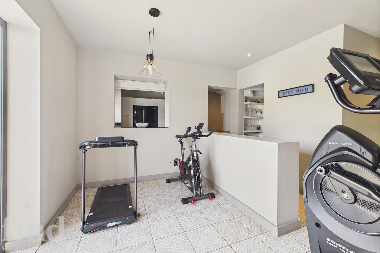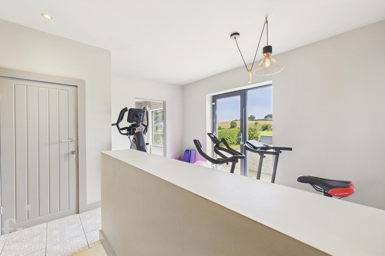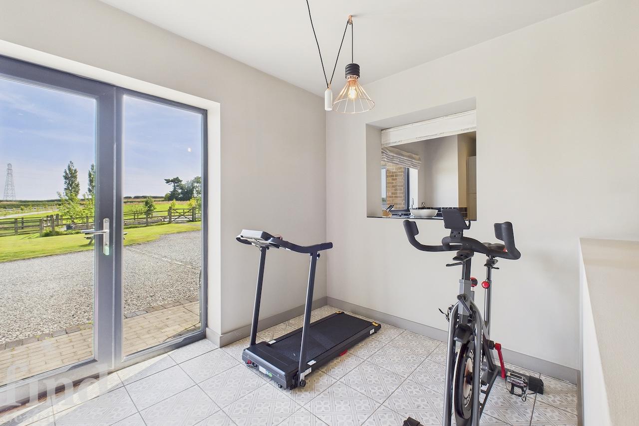 Fitness area, bar room and study.