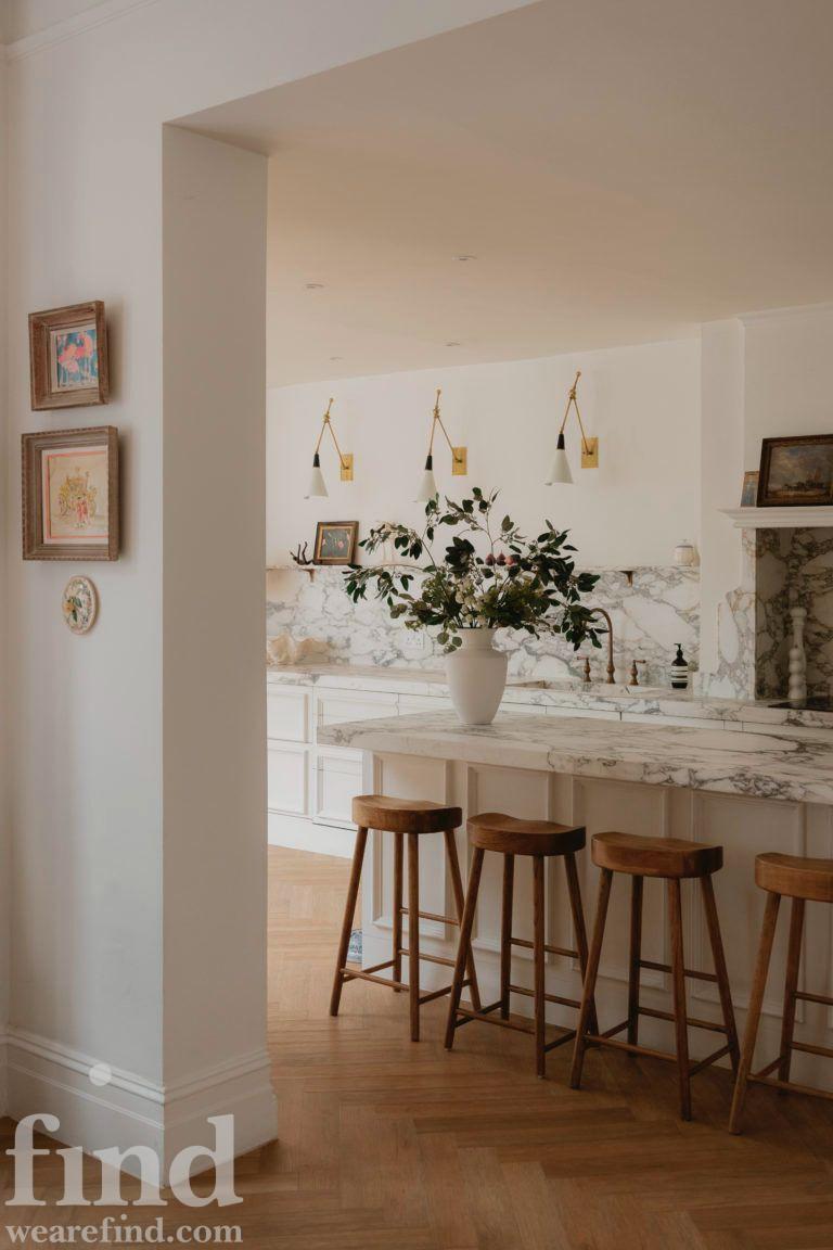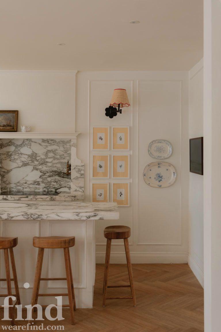 This home blends classic architecture with a relaxed, lived-in elegance. Soft whites, herringbone timber floors, and traditional detailing create a calm, cohesive backdrop, while marble surfaces, brass accents, and gentle arches add quiet sophistication. Natural light moves easily through the rooms, giving the house an open, effortless flow.