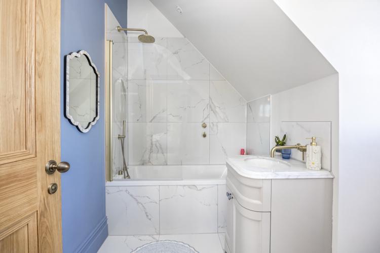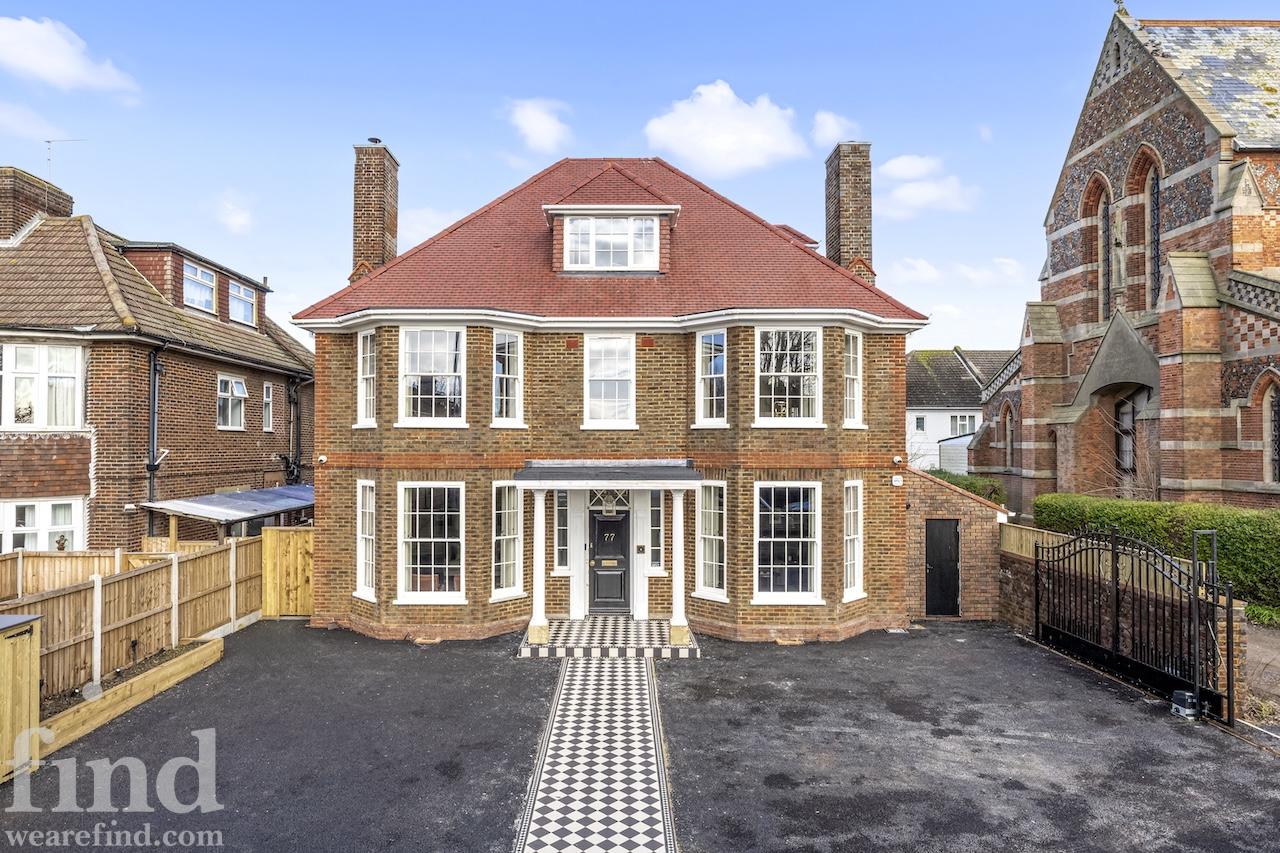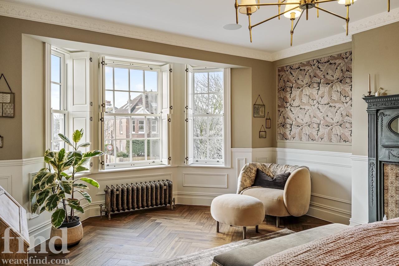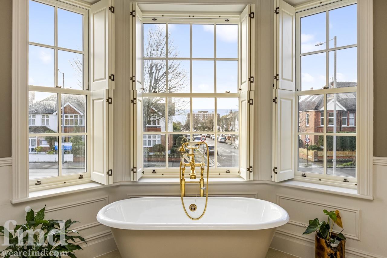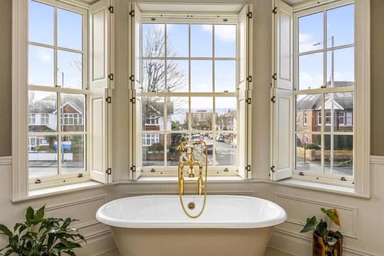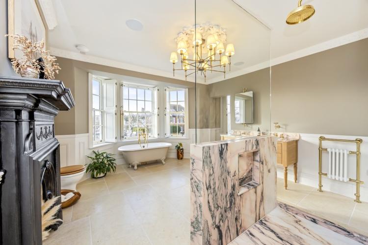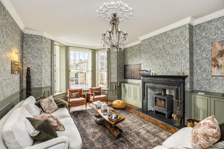 Set just 500 metres back from the sea, this striking double-fronted Victorian house offers sea views, exceptional natural light and layers of period character. Rich panelling throughout, ornate coving and dramatic ceiling roses, original fireplaces with working log burners and softly coloured stained-glass windows that cast beautiful light across the rooms. Marble tiling and oak flooring run through the house. Throughout the house, carefully curated antique furniture sits alongside bespoke, one-of-a-kind pieces, adding depth, texture and a lived-in elegance that feels authentic.