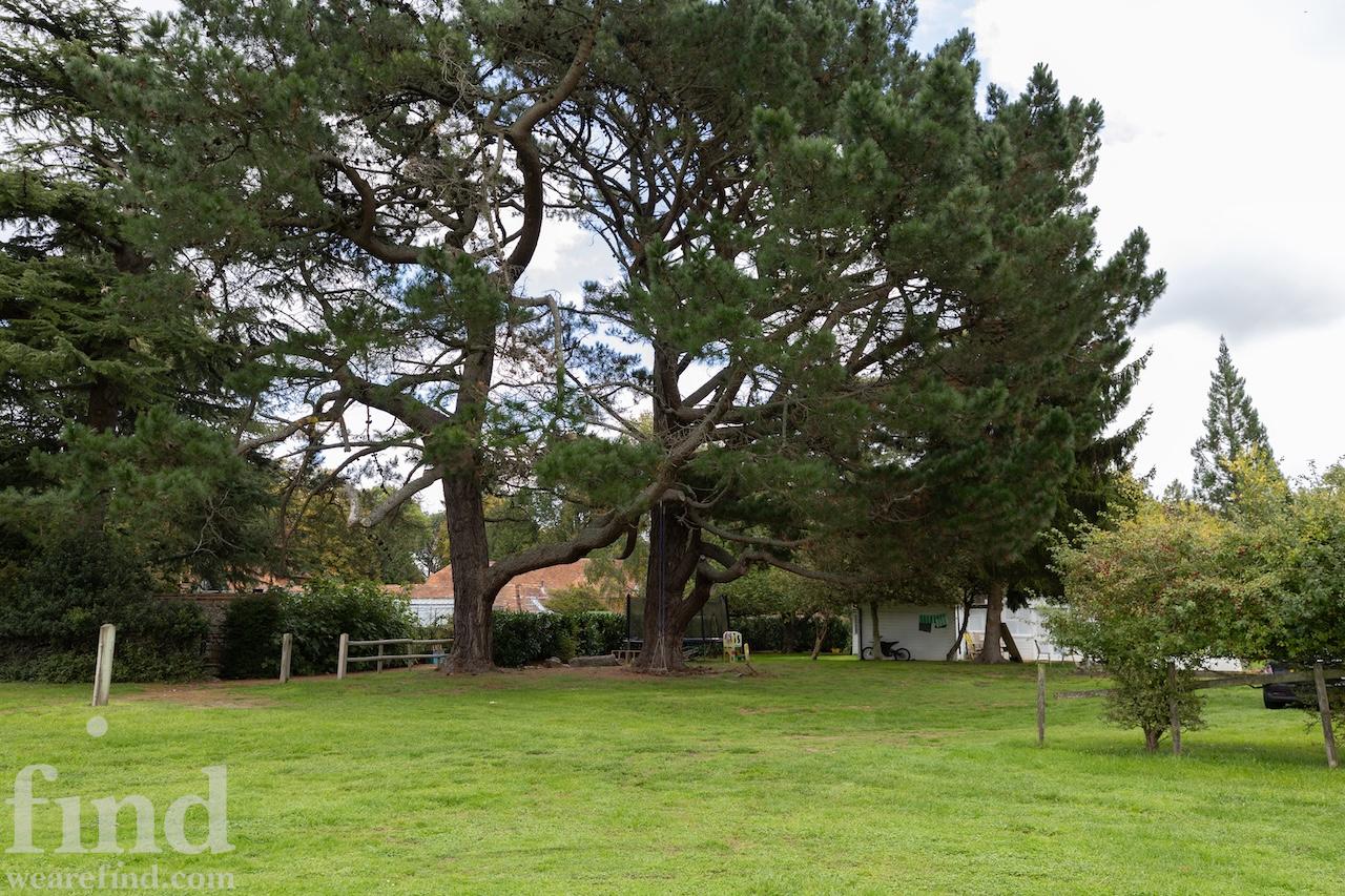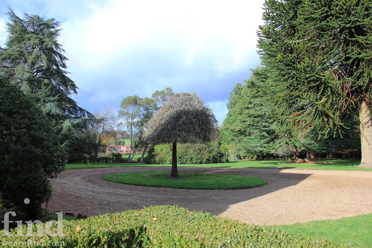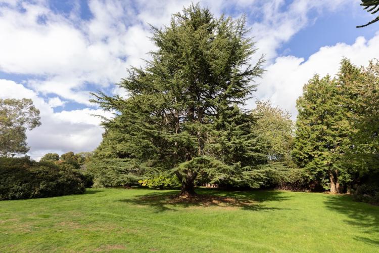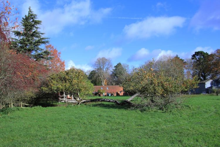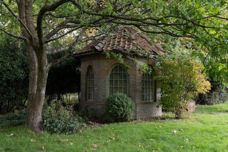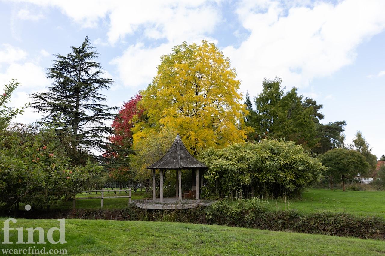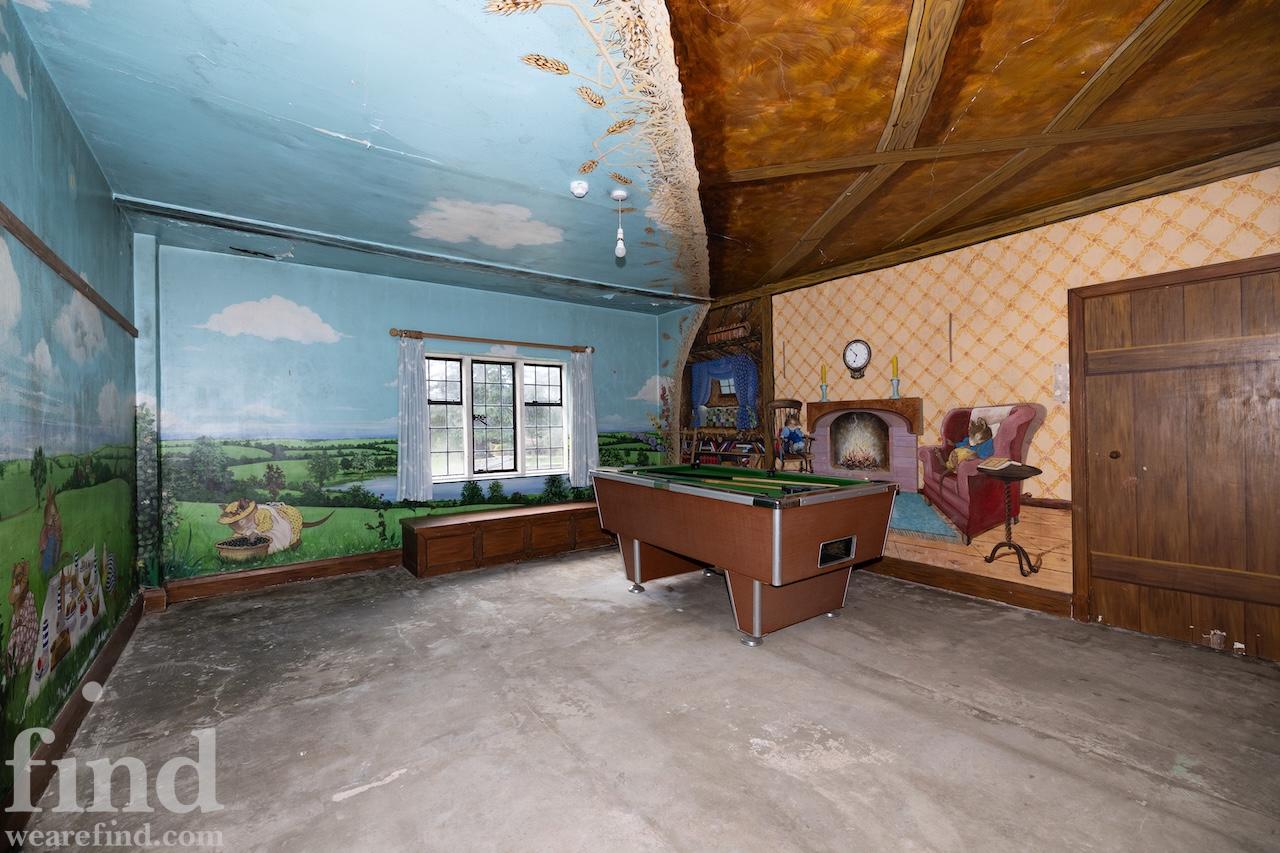 Set within 150 acres of private countryside, the estate features three additional houses, stables, fields, formal gardens, orchards, two swimming pools, a tennis court, an industrial metal hangar, and over 130 acres of ancient woodland.