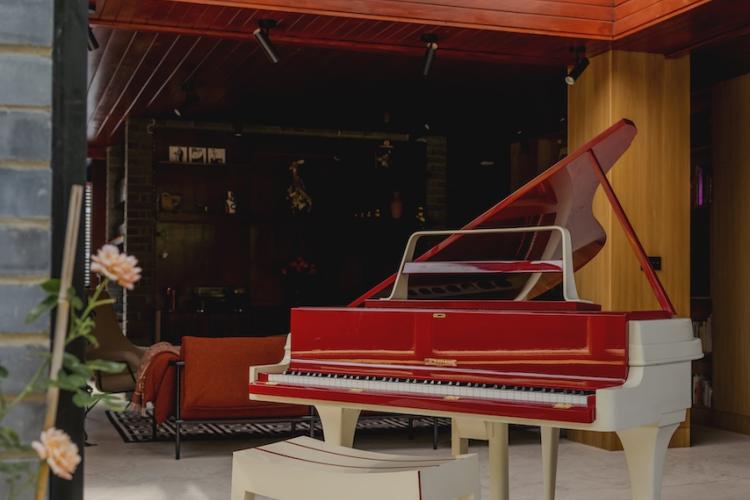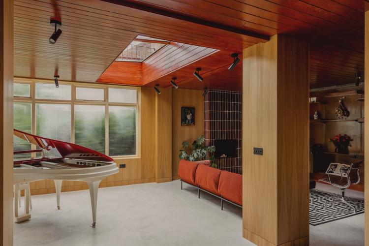 The ground floor is completely open plan. The property comes complete with off-street parking, a sauna, Grand Piano, working fireplace, water feature, large roof terrace, sizeable kitchen, garage, front and back gardens. There’s also a music studio available as an additional hire.