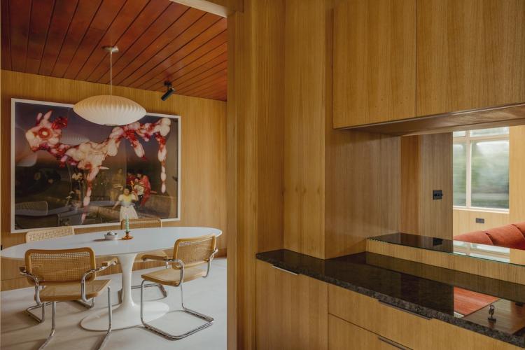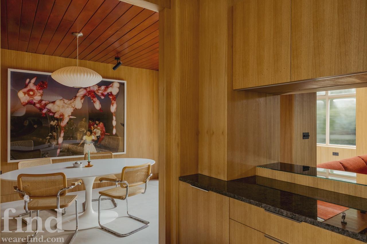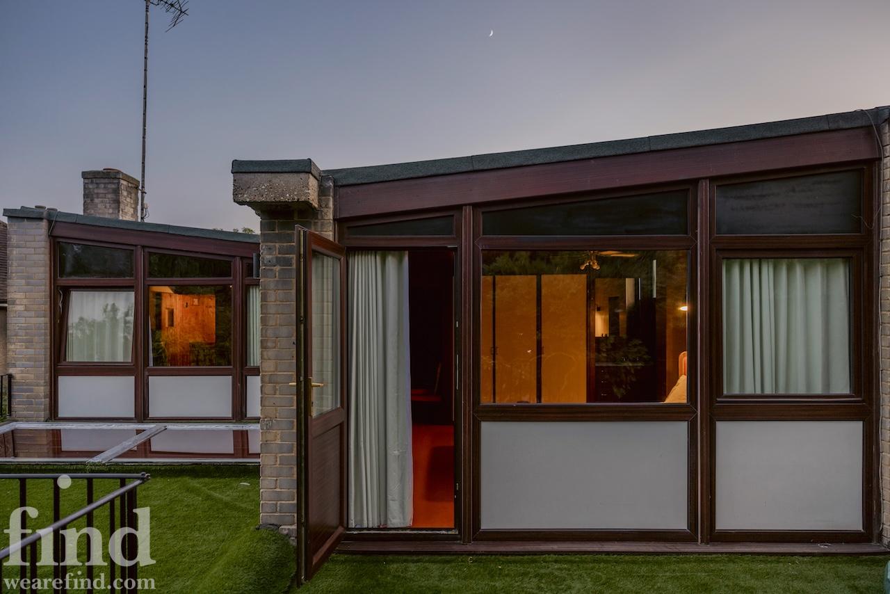 Built in 1961, the detached house is a perfect example of modernist architecture of the time, designed with an unusual butterfly roof over two expansive floors. The house has been very recently restored to its former glory and can serve as both a fashionable modern shoot location or period home reflecting styles of the 1950s, 1960s or 1970s. The house and its outbuildings total close to 3,000sqft.