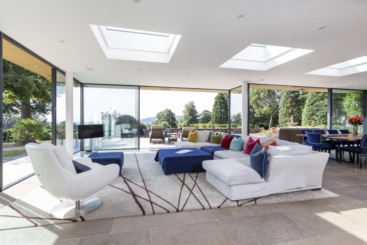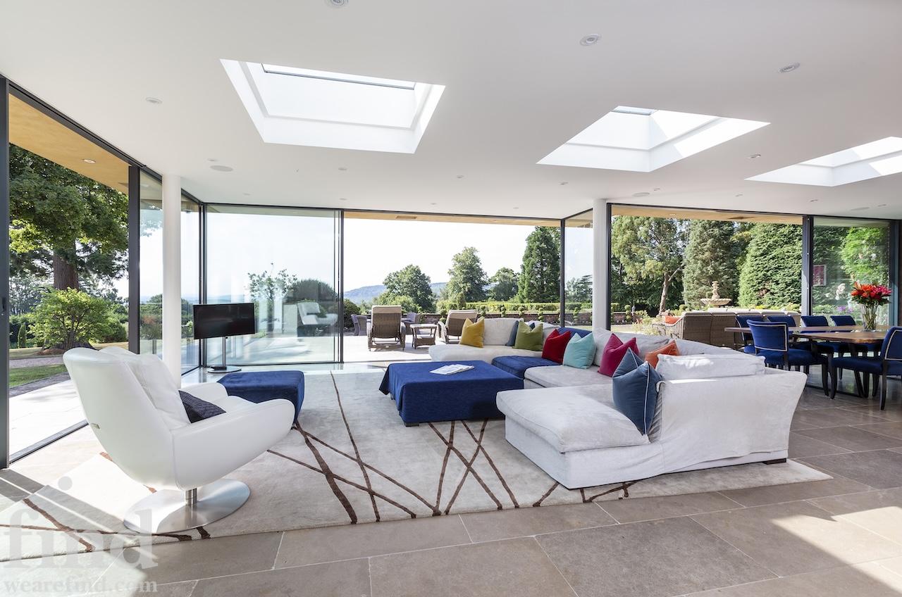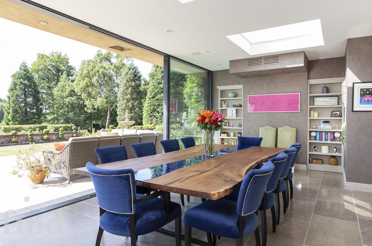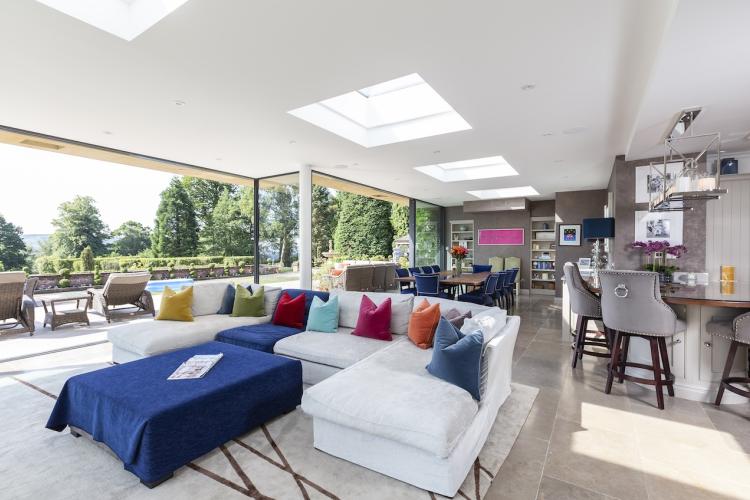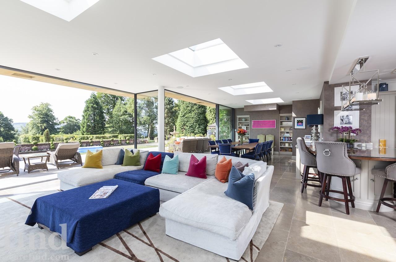 1 x gigantic open plan kitchen, dining and sitting room with sliding glass doors overlooking the huge garden and views.