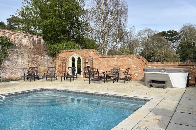 Luxurious grade II Manor House with gorgeous gardens and grounds, surounded by a golf course. The property benefits from numerous large rooms, out houses and flexible accommodation. The property itself has been subject to recent contemporary restoration inside. The gardens and grounds offer a varied amount of filming possibilities, benefiting from a stunning parterre, a Mediterranean swimming pool area, sunken garden, lake, walled gardens along with beautiful lawns. There is also a small village church that boarders the property, potentially available subject to further permissions.
