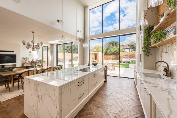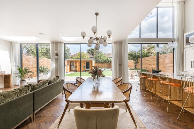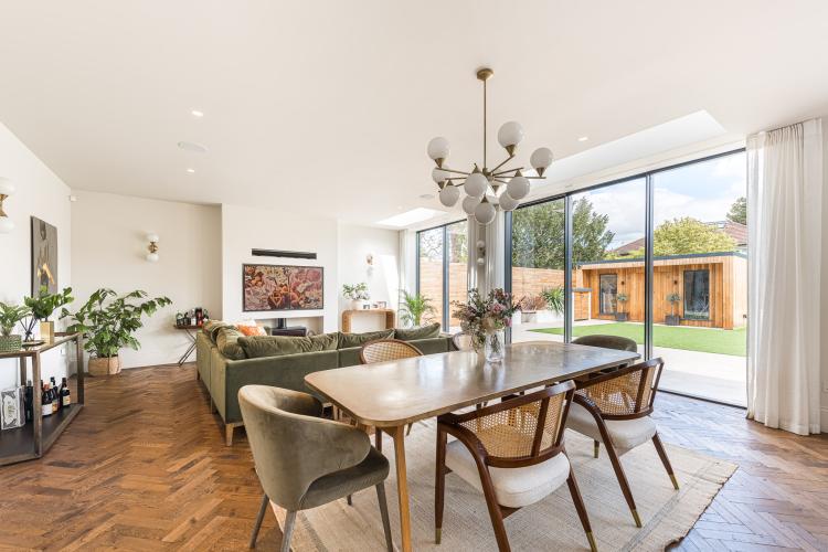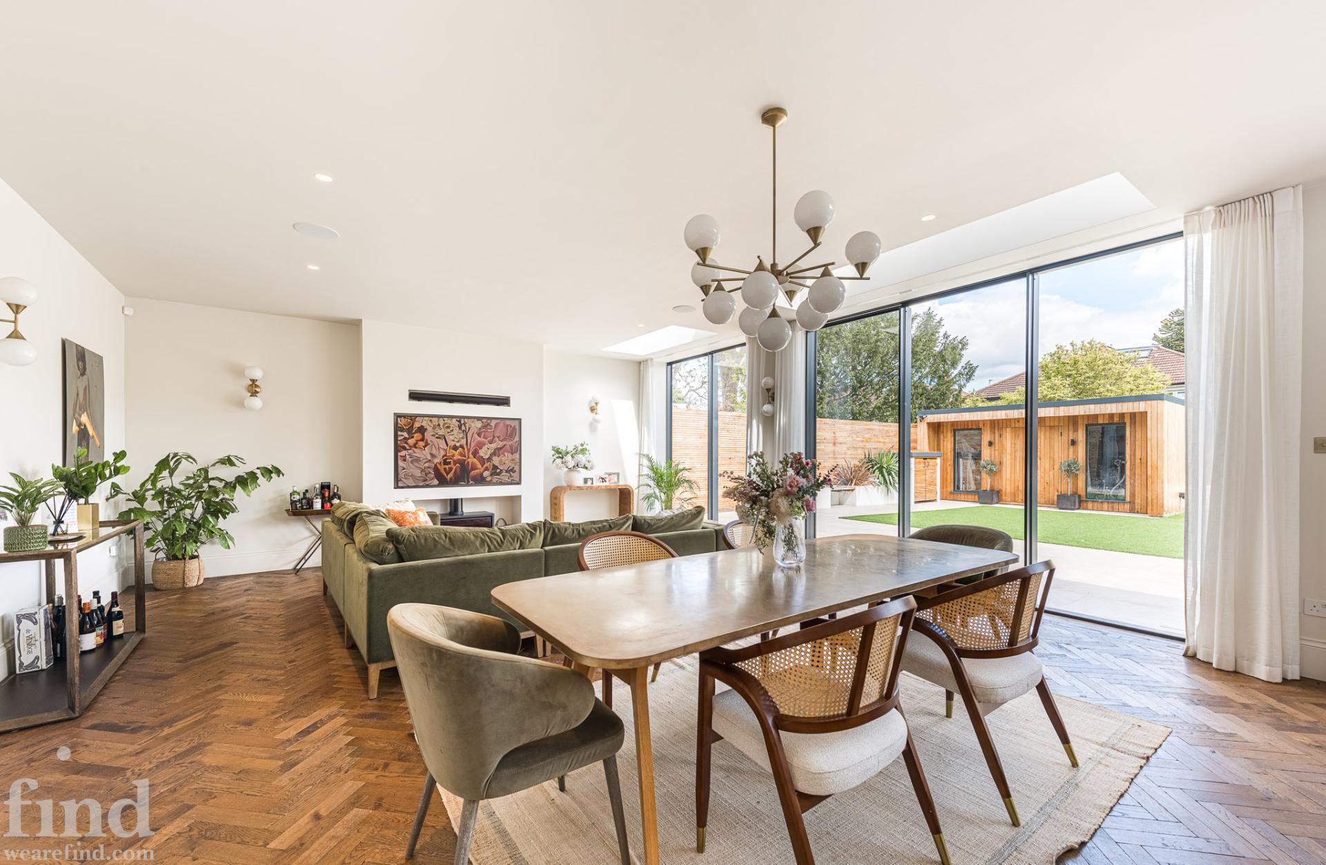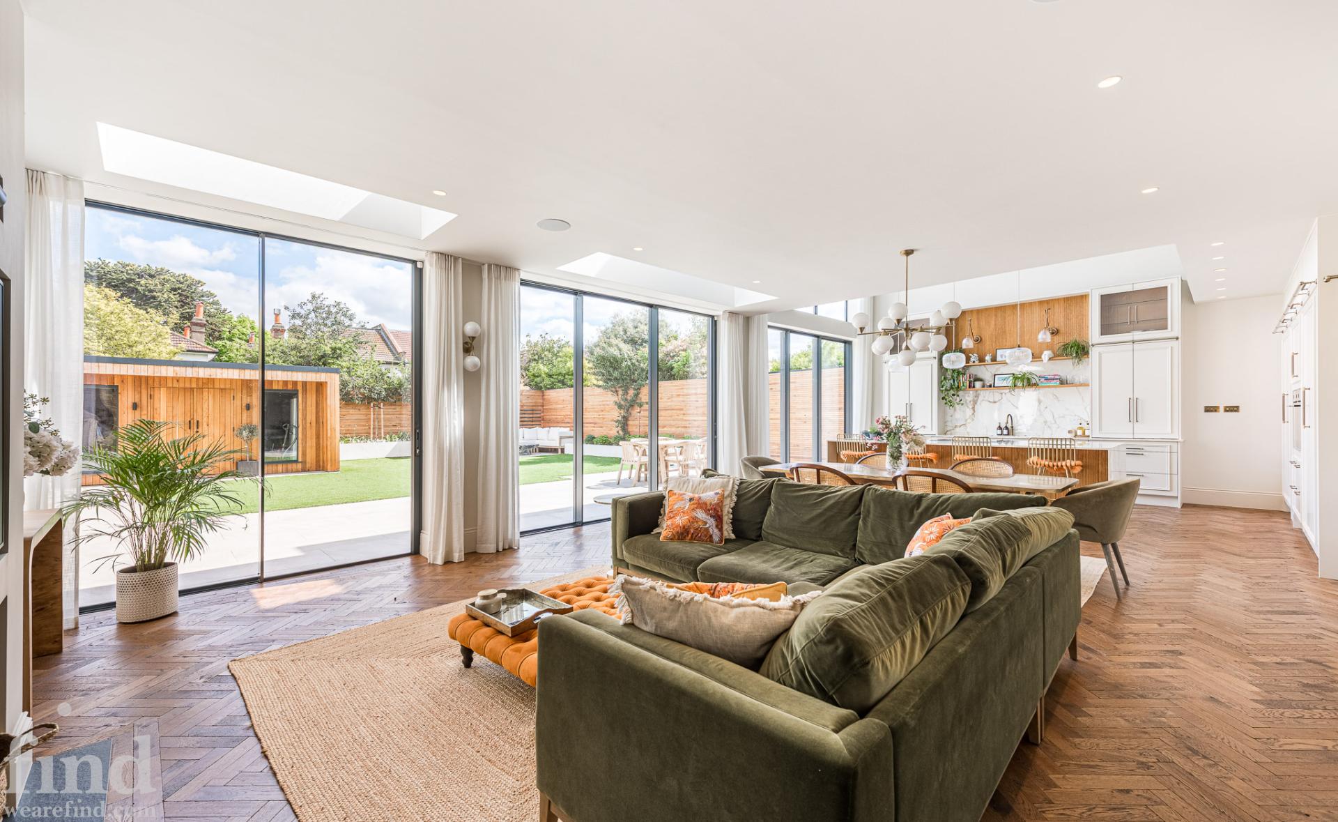 A sleek new build with lots of natural light. It is a double-fronted, Edwardian property with high ceilings and large rooms.