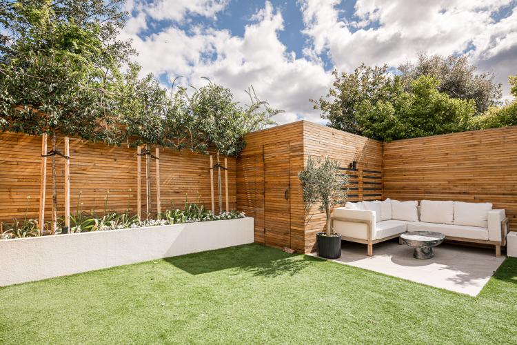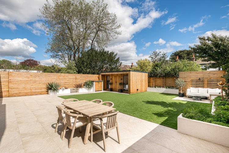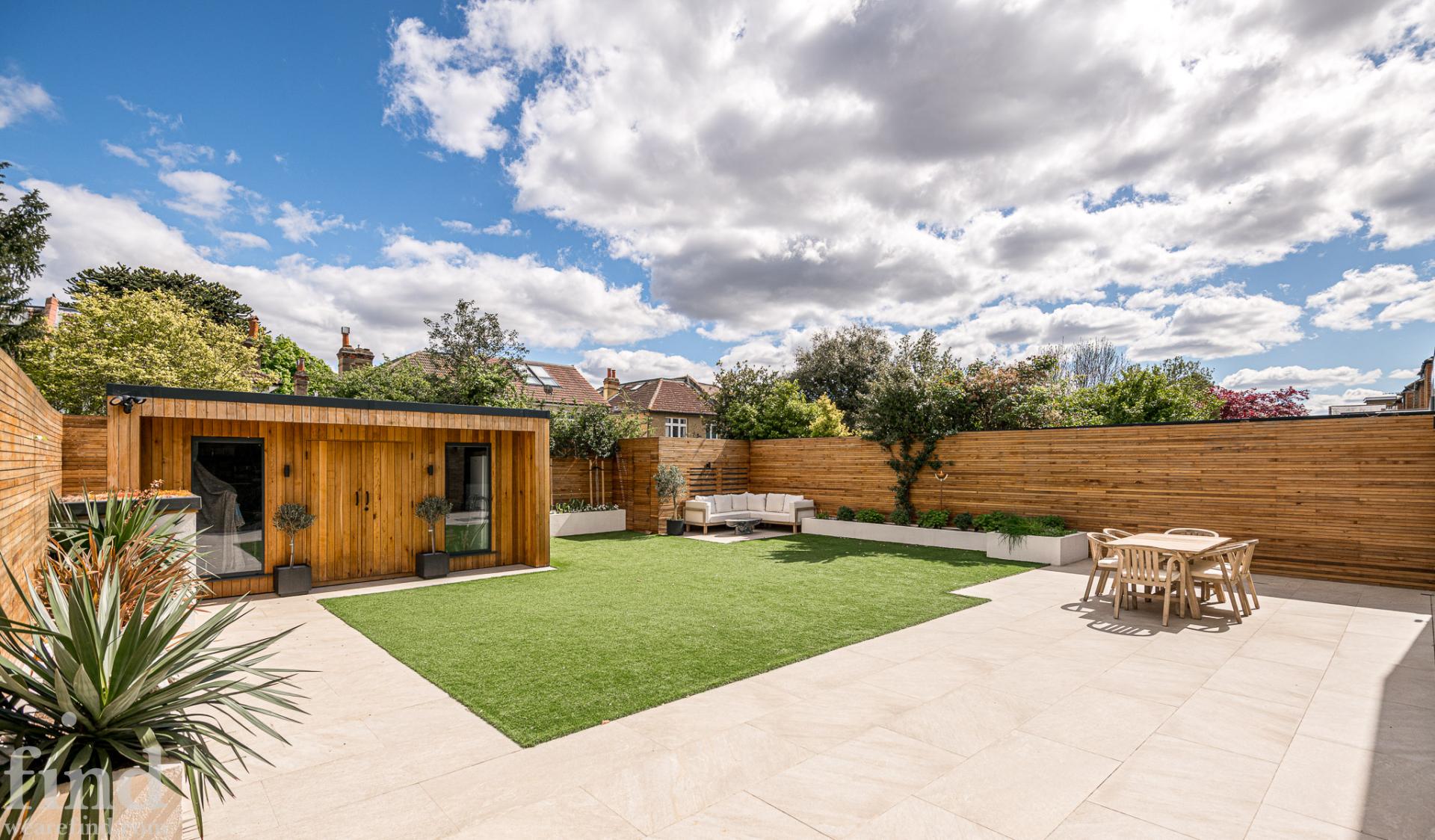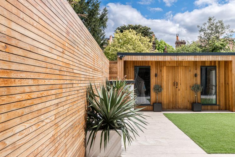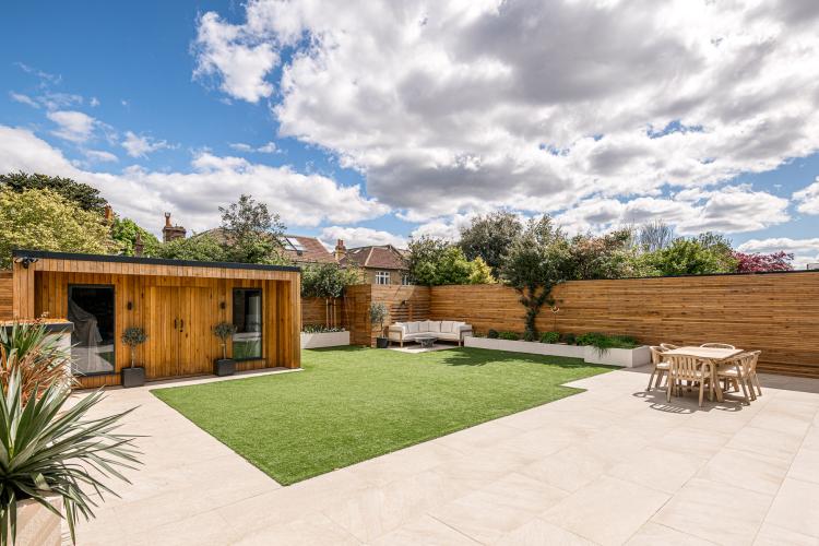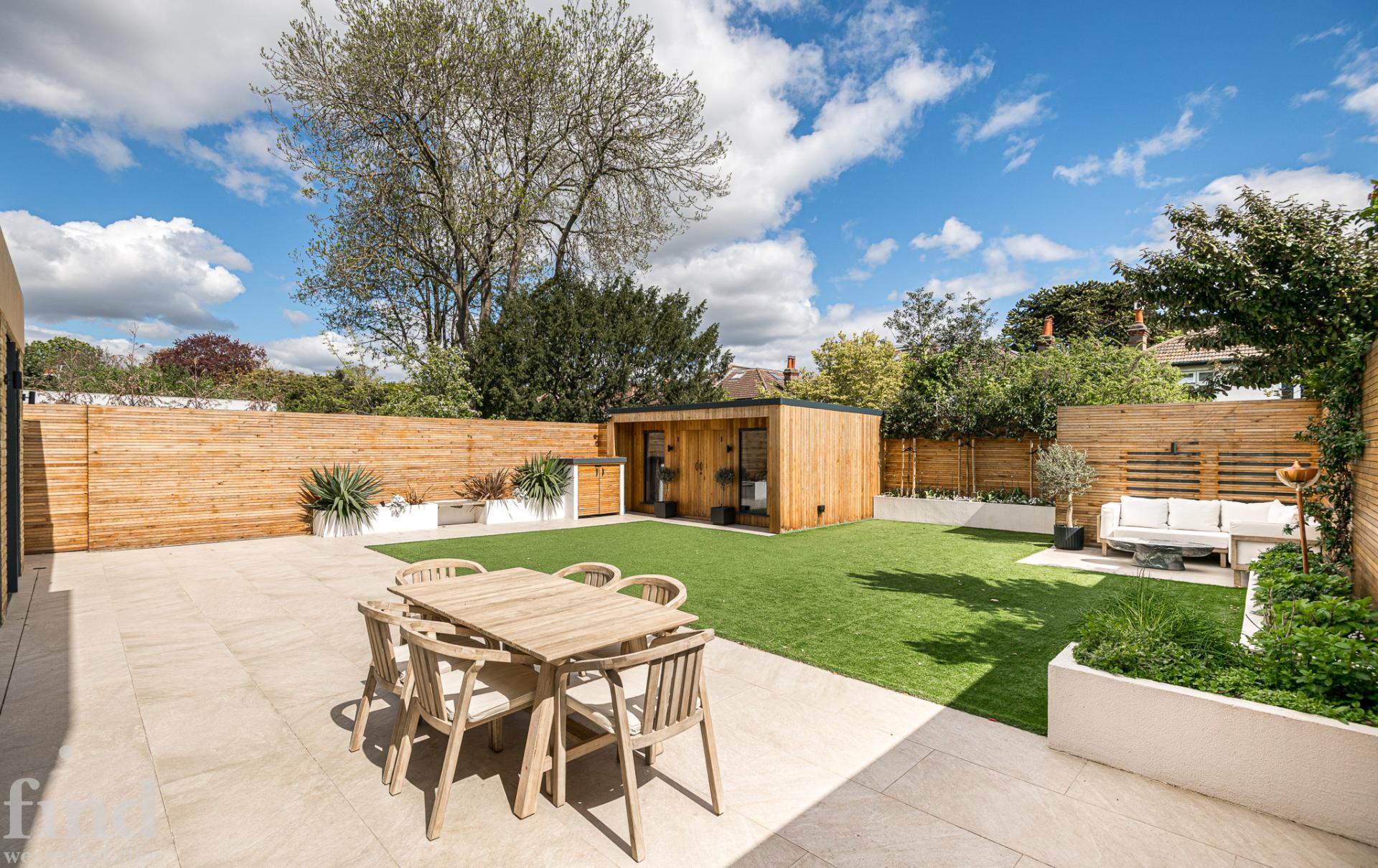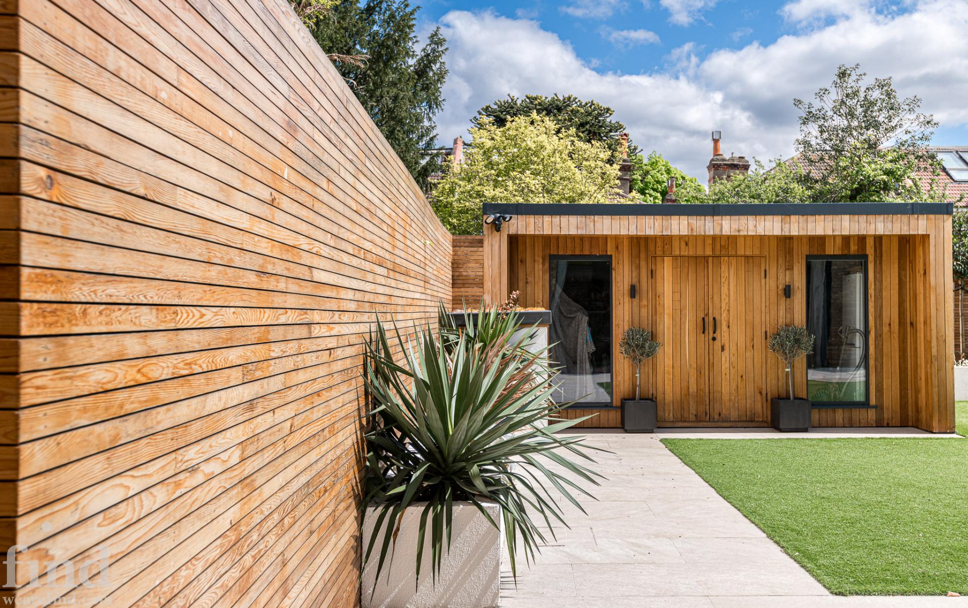 Modern garden with garden room